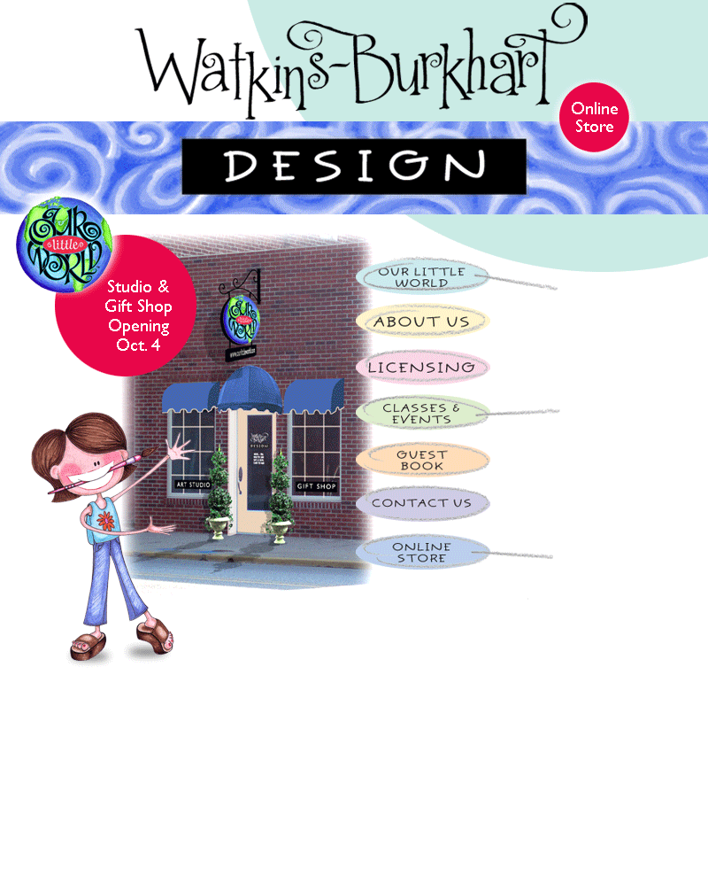 [HOME] [OUR LITTLE WORLD] [ABOUT US] [LICENSING] [CLASSES & EVENTS] [GUEST BOOK] [CONTACT US] [ONLINE STORE!] |